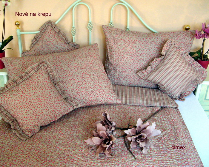 F046 Doprodáno- Bavlna kolekce-Fosforově červená kytička,proužek Vende na kakaovém podkladě