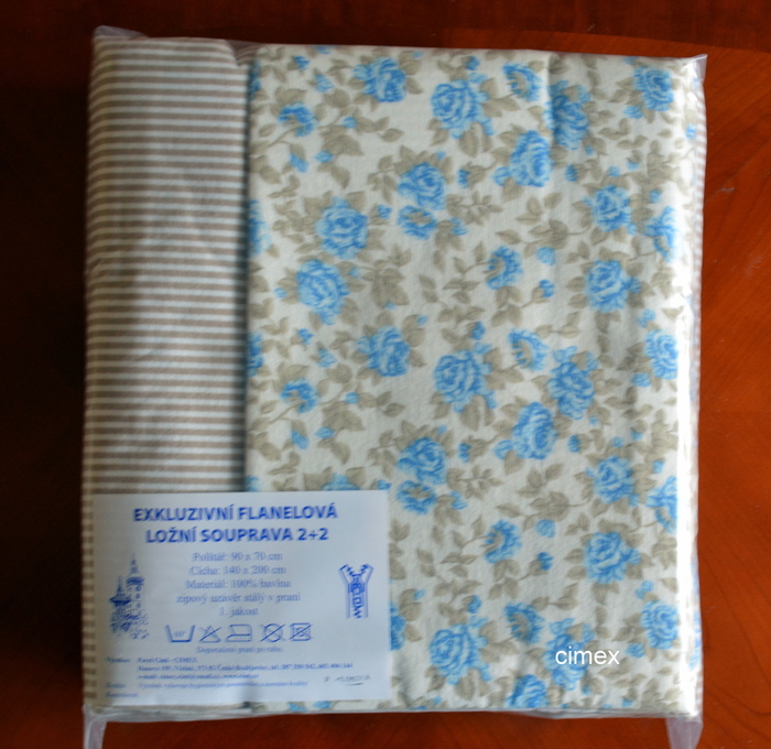 D023 Flanel kolekce-modré růžičky na béžovém NOVINKA