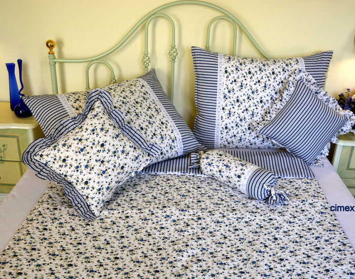 F075-Bavlna kolekce-CHrpově modrá letní kytička,proužek zdobená štykovánm