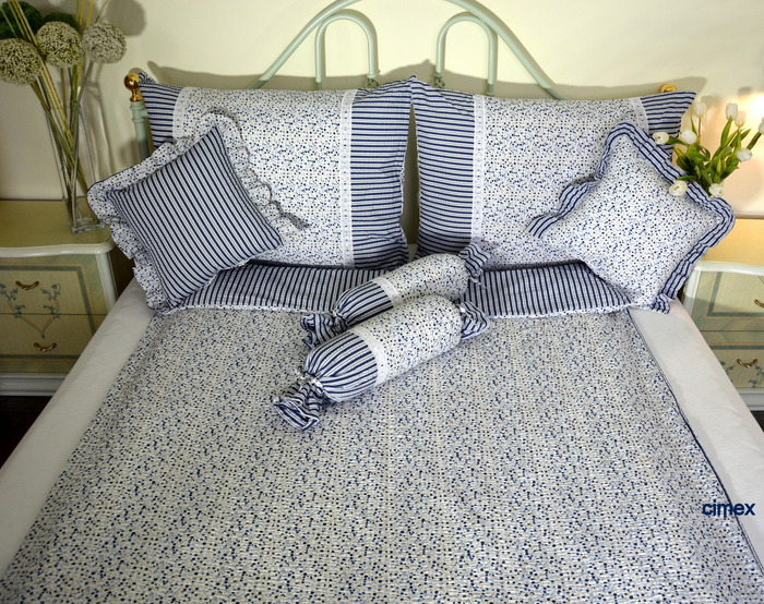 F079-Kolekce bavlna-Drobná venkovskámodrá kytička proužek VENDE zdob. štykováním