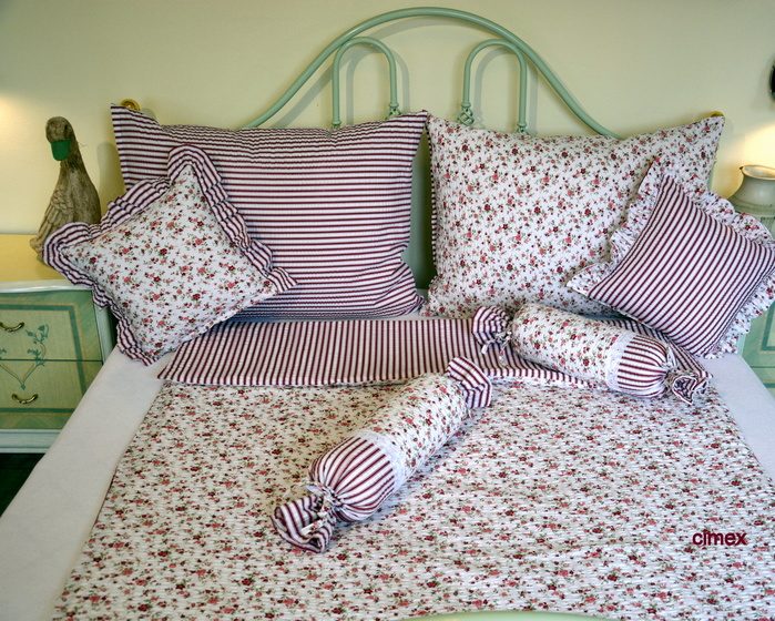 100%bavlněná počesaná tkanina s jemným vlasem,vynikající svou hřejivostí,měkostí a savostí.Gramáž 165g.Malé polštářky a válec jsou pouze dekorací