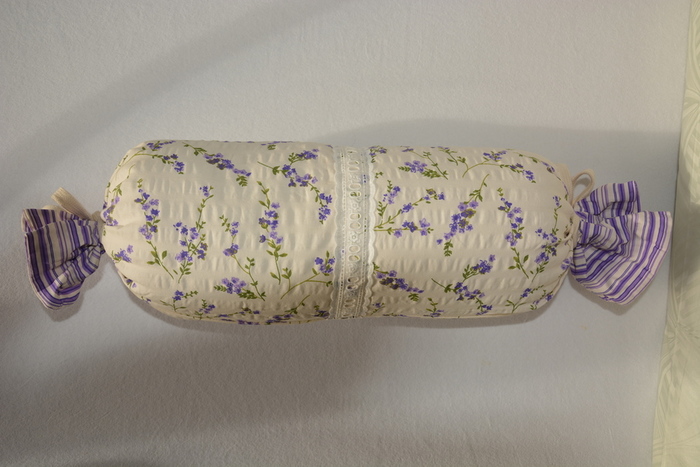 V002 Povlak na dekorační válec-Levandule s proužkem